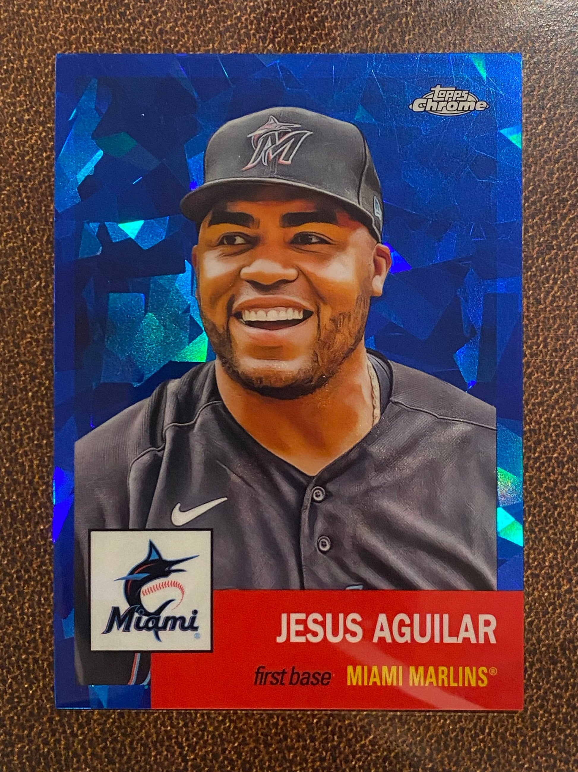 Jesus Aguilar - 2022 Topps Chrome Platinum Anniversary - Blue Atomic /100 - Marlins